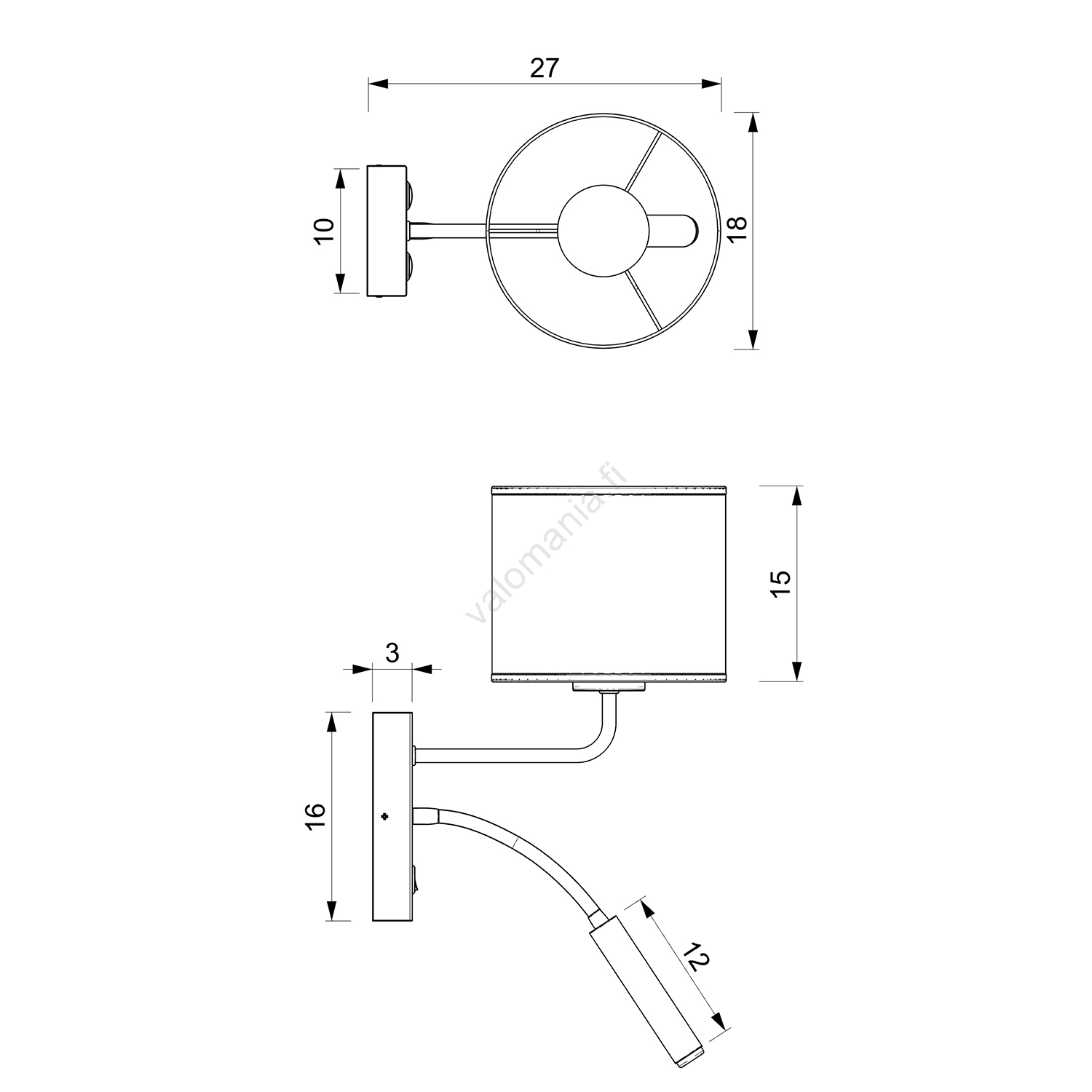 Huoneet, Olohuone ja makuuhuone, Seinävalaisimet, Seinävalaisimet, Sisävalaistus, Valot