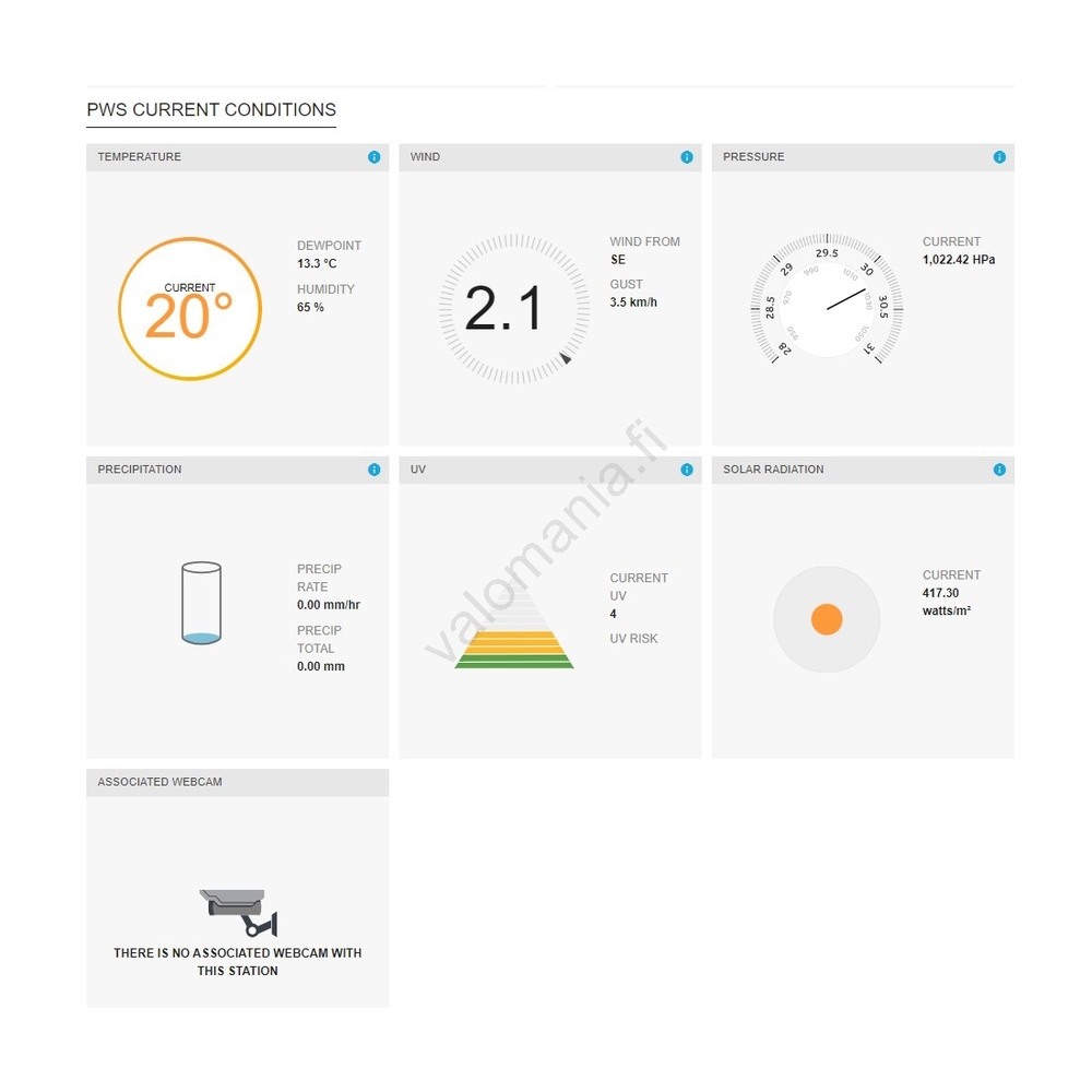 • Anturi mittaa tuulen nopeutta ja suuntaa, sateen määrää, lämpötilaa, kosteutta, valon intensiivisyyttä ja UV-säteilyä.