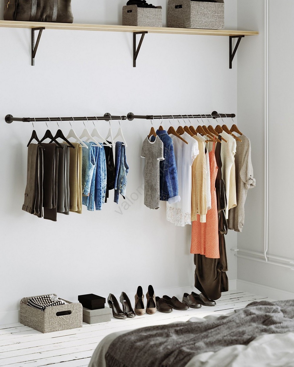 • 30 cm etäisyys seinän ja ripustustangon välillä tarjoaa riittävästi tilaa useimmille henkareille ja vaatteille.