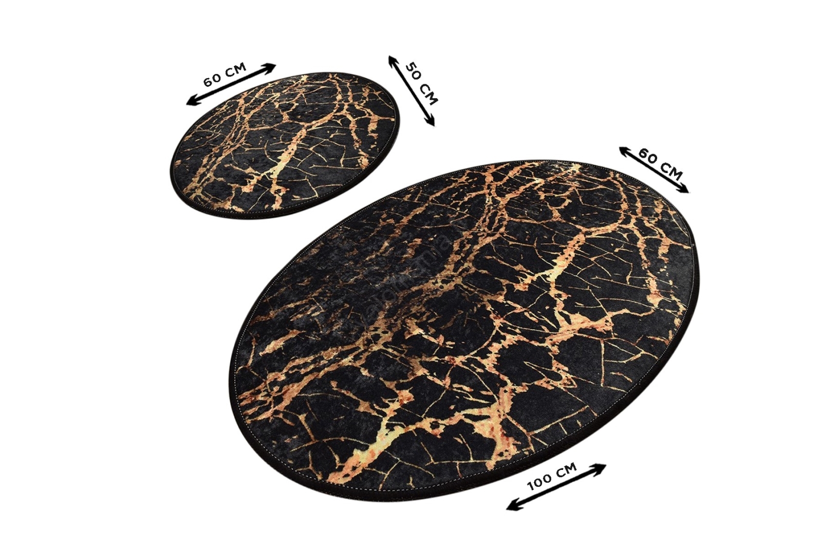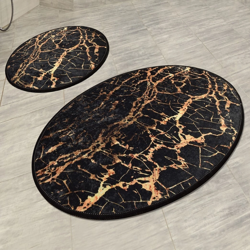 2x Kylpyhuonematto GOLDES 60x100 cm musta/kulta | Valomania
