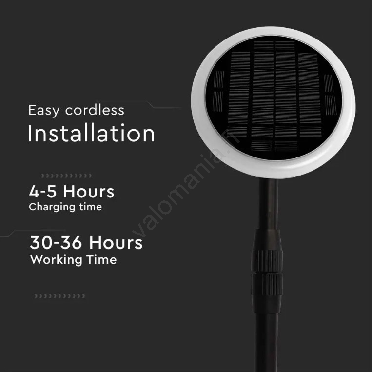 • Valaisimen aurinkopaneeli on valmistettu monikiteisestä piistä.