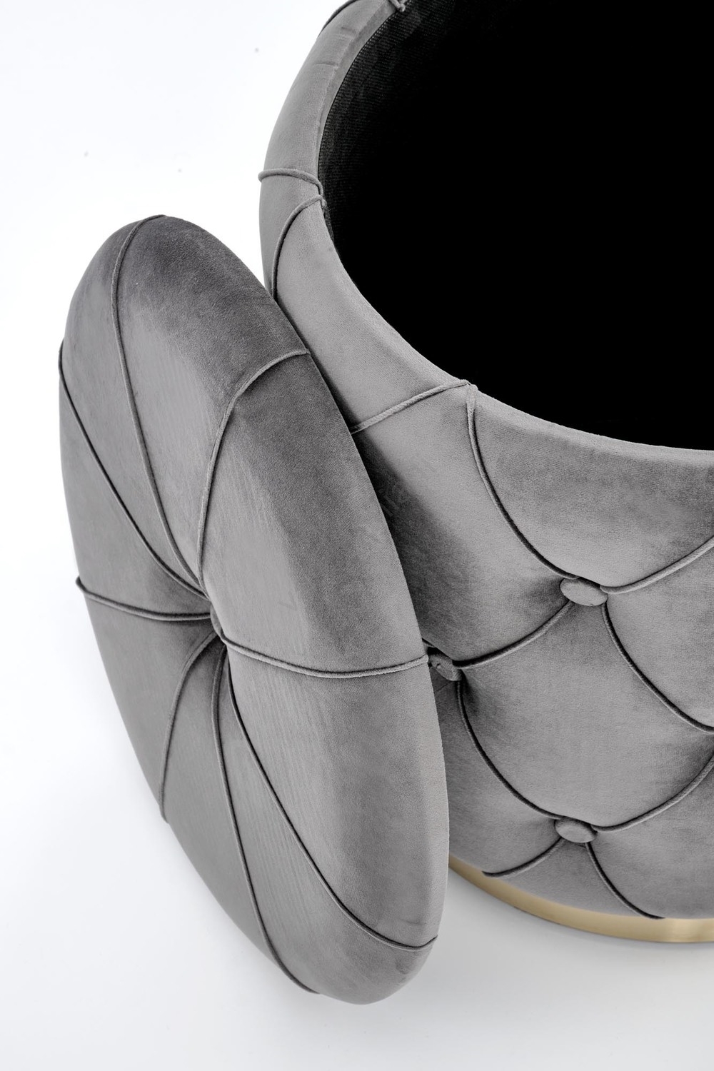 • Verhoiltu harmaalla kankaalla, jossa kullanväriset yksityiskohdat.