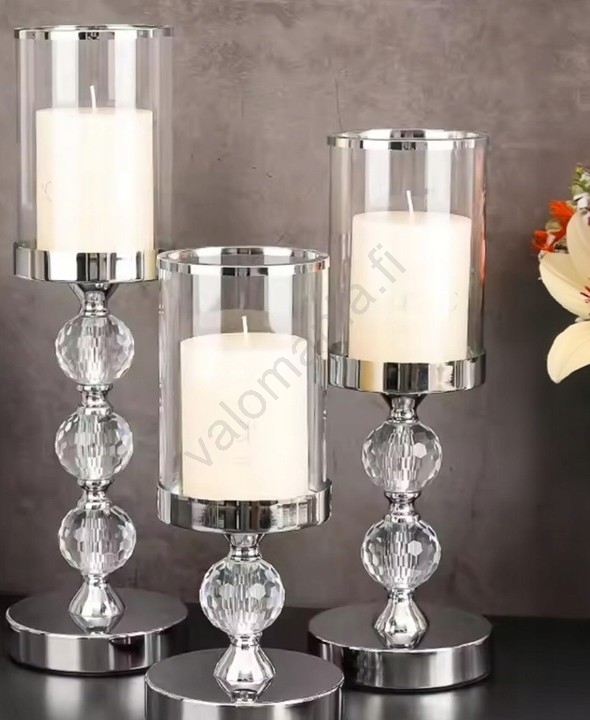 • Setti 3 kpl kiiltäviä kromisia kynttilänjalkoja
