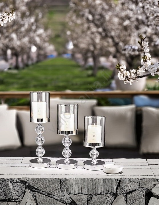 Setti 3 kpl kiiltäviä kromisia kynttilänjalkoja | Valomania