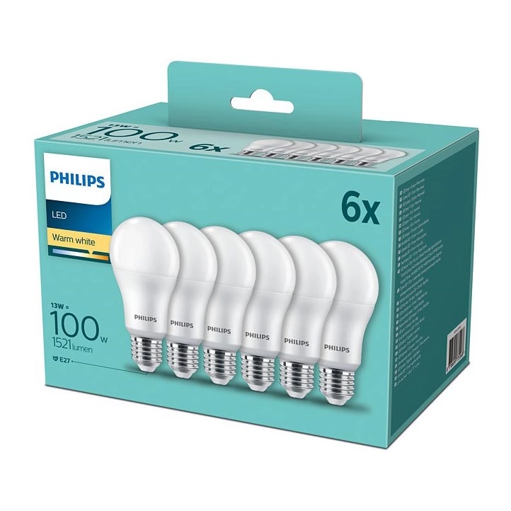 SETTI 6xLED-polttimo Philips A60 E27 / 13W / 230V 2700K Laadukas muotoilu takaa täydellisen valaistuksen sisätiloissasi. Luokka E27 on omistettu polttimoille, joissa on sama kanta. Verkkokaupastamme voit valita joko perinteisistä hehkulampuista tai moderneista LED-polttimoista, jotka ovat energiatehokkaampia ja pitkäikäisempiä.