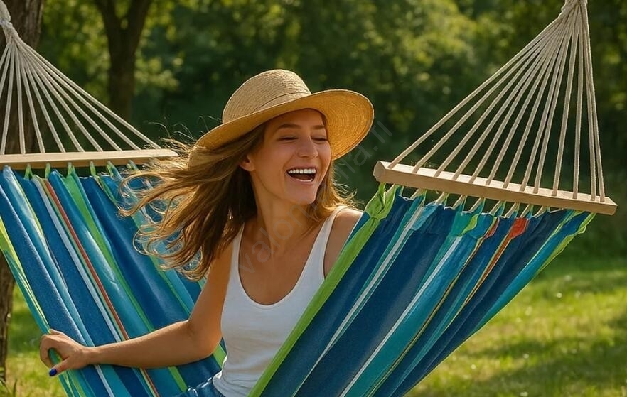 • Riippumatossa on molemmissa päissä puiset levikepuut, jotka takaavat erinomaisen vakauden ja sitä kautta korkean käyttömukavuuden.
