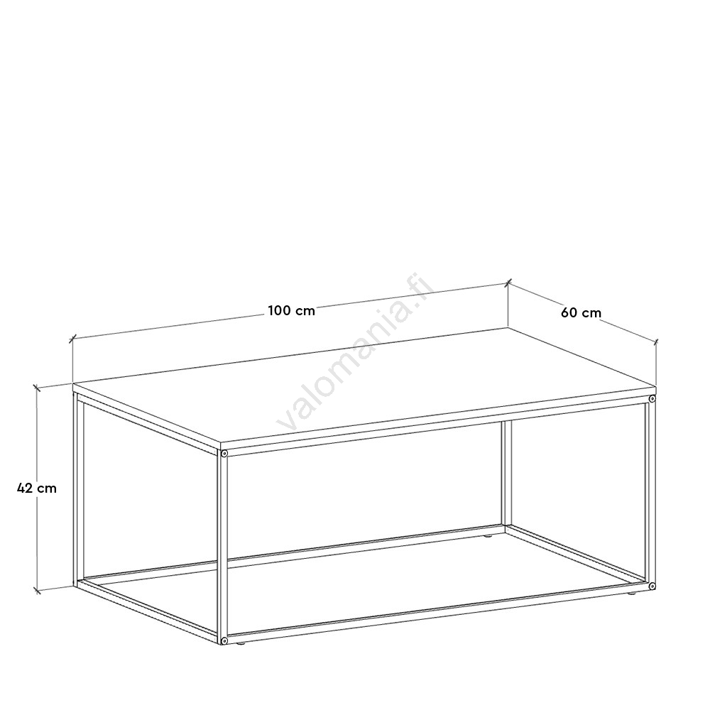 • Valmistettu 1,6 cm paksuisesta lastulevystä, jalat metallia.