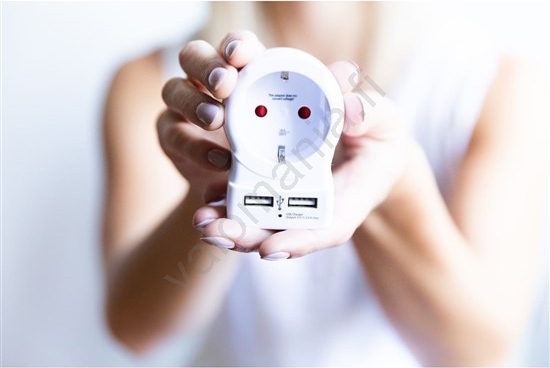 Solight PA28USB - Matkasovitin UK 230V + 2x USB -portti | Valomania