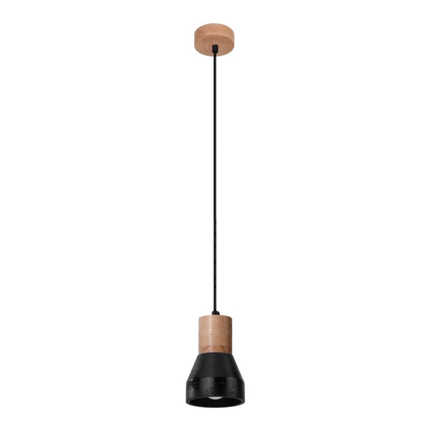 Kattokruunu johdossa QUBIC 1xE27/60W/230V betoni/Koivu/pyökki/musta