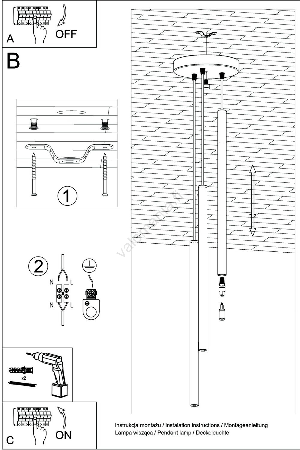 • Kattokruunu johdossa PASTELO 3xG9/8W/230V valkoinen