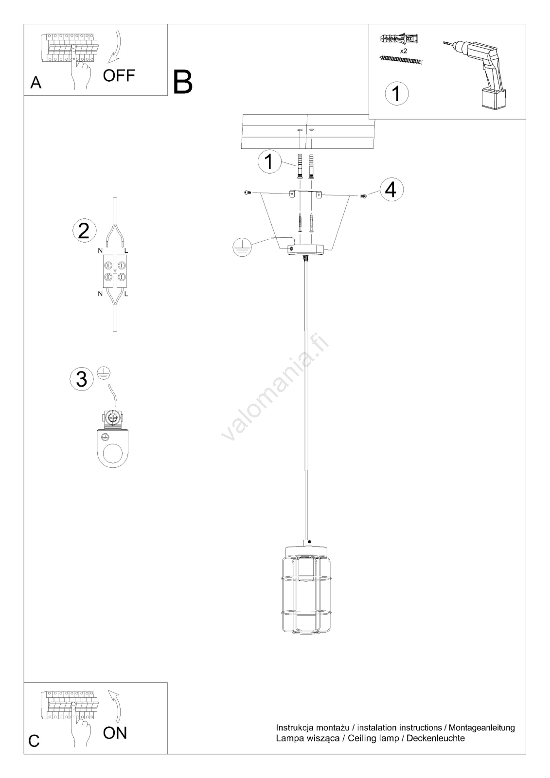 Sollux SL.1263 - Kattokruunu johdossa GOTTO 1xE27/15W/230V musta | Valomania