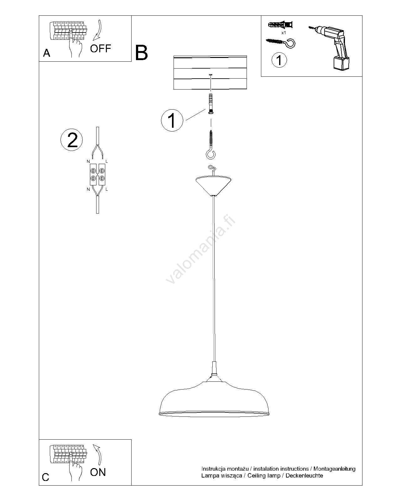 • Kattokruunu johdossa GINA 1xE27/15W/230V halkaisija 38 cm valkoinen