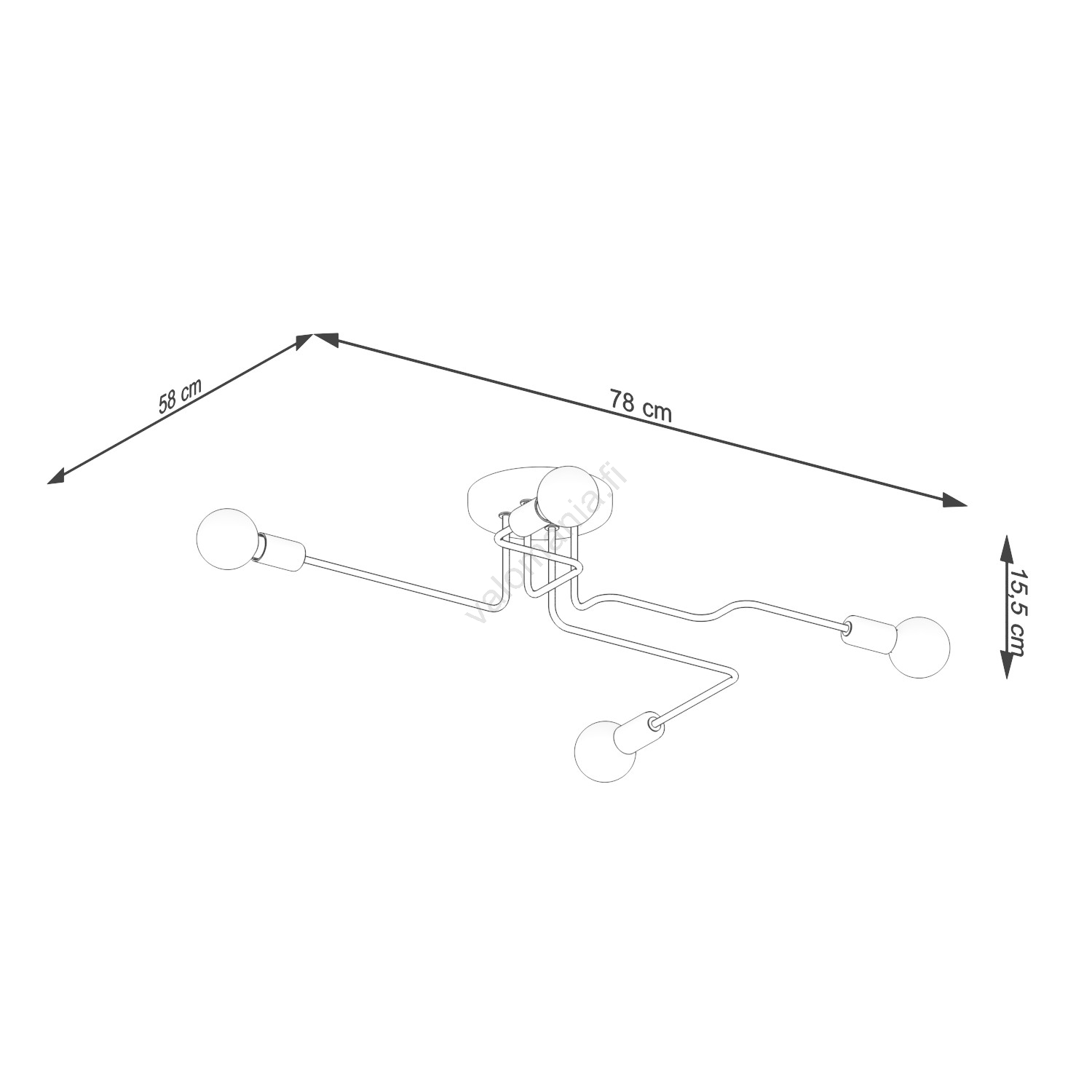 Kiinteä kattokruunu VECTOR 4xE27/15W/230V musta merkitsee kaunista ja toimivaa muotoilua.  Valoon sopii polttimo, jossa on E27-kanta. Täältä voit ostaa myös muita lamppuja edulliseen hintaan. Mielenkiintoinen lisä kotiisi.