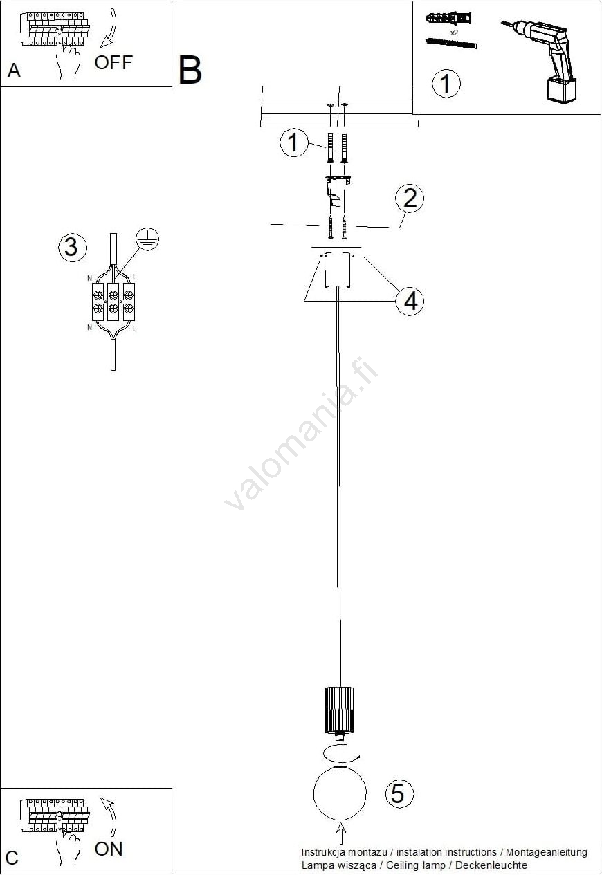 • Kattokruunu johdossa HALO 1xG9/8W/230V halkaisija 12 cm valkoinen