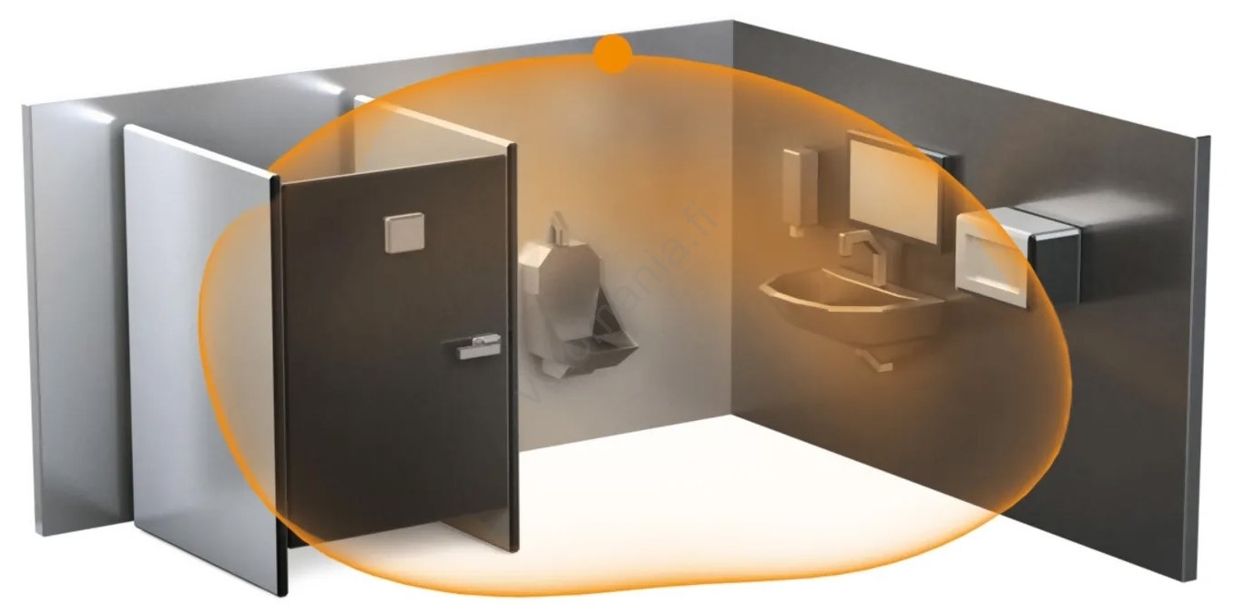 • Sen kantaman (Ø 12 m) ja kokonaispeiton (113 m²) ansiosta se on ihanteellinen havaitsemaan pukuhuoneita, varastoja, sosiaalisia tiloja, käytäviä, WC-tiloja jne.