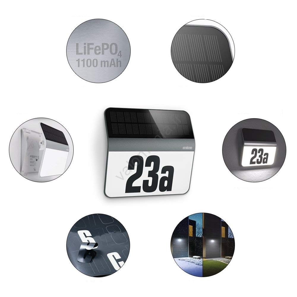 STEINEL 007140 - LED aurinkokotinumero XSolar LH-N LED/0,03W ruostumaton IP44 | Valomania