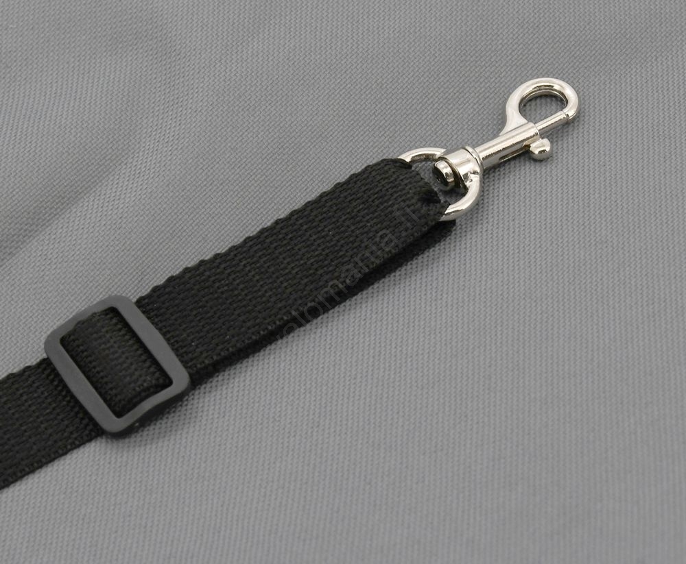 • Suoja on lisäksi varustettu sivuilla hihnalla ja karabiinilla kaulapannan kiinnittämistä varten.