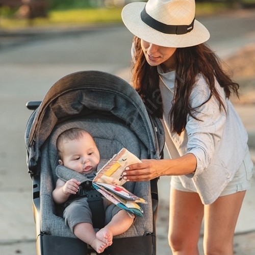 • Yksittäiset sivut kahisevat kevyesti, kun niitä puristetaan, ja tarjoavat erilaisia toimintoja ja kuvioita, joita vauva voi tutkia.