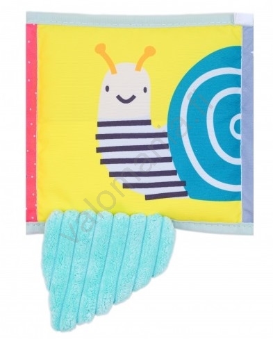• 3 kk:sta alkaen: sivu, jossa on värikkäitä kuvia ja erilaisia tekstuureja tutkittavaksi, mikä kannustaa vauvan aistien ja hienomotoristen taitojen kehittymistä.
