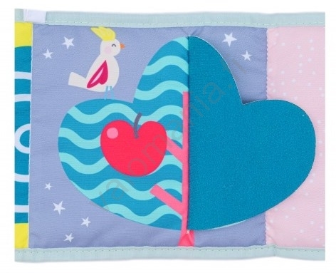 • Pikkulasten käännettävä tekstiilikirja on suunniteltu rattaisiin, pinnasänkyyn ja leikkipeittoon.
