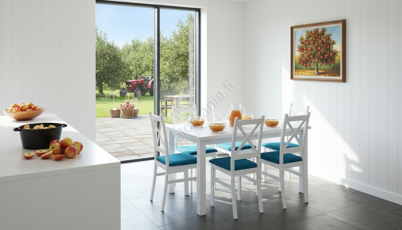 • Valkoinen väri antaa ruokapöydälle modernin ja samalla kodikkaan ilmeen.