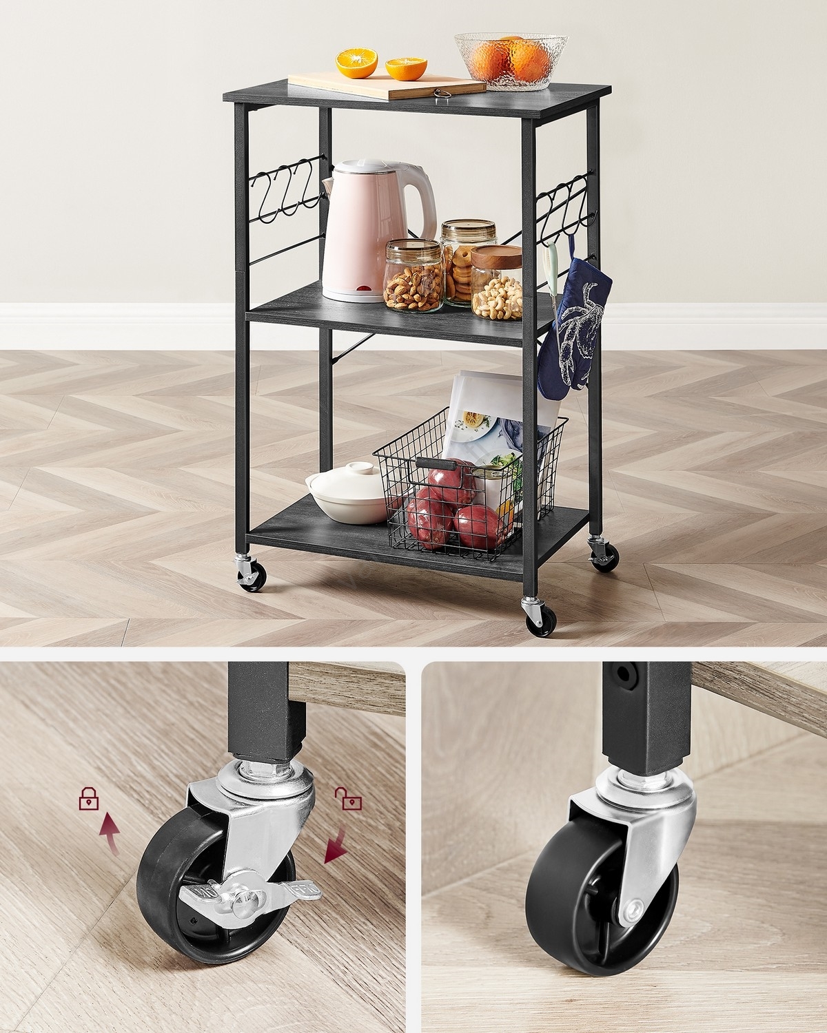 • Pidä järjestys ja selkeys – kun kaikki on käden ulottuvilla, työ sujuu nopeammin ja tehokkaammin, kiitos kolmen eri korkeudella olevan hyllyn.