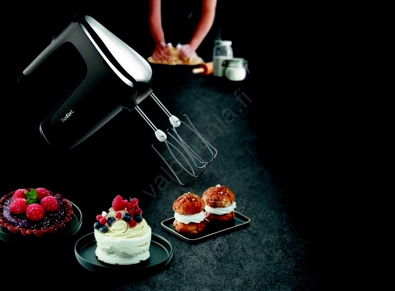 • Pakkauksessa on sekä sekoitus- ja vatkauspiikit että ruostumattomasta teräksestä valmistetut taikinakoukut.