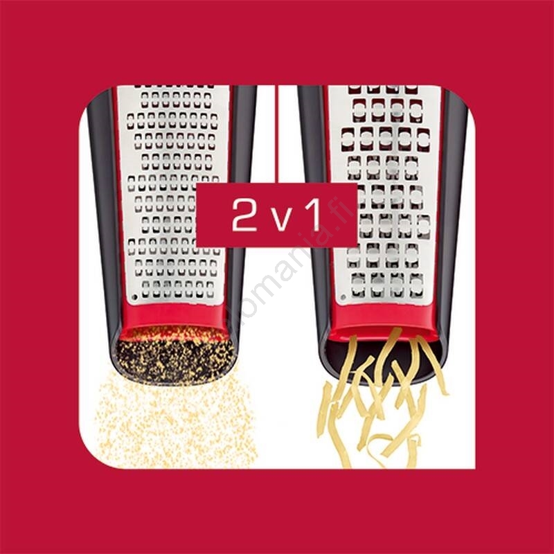 • Jokaisella puolella on eri raastustaso: hieno tai karkeampi, sopien erilaisille raasteille.