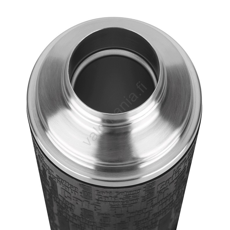 • Tiivis ruostumattomasta teräksestä valmistettu vakuumitermos, jossa on muki.
