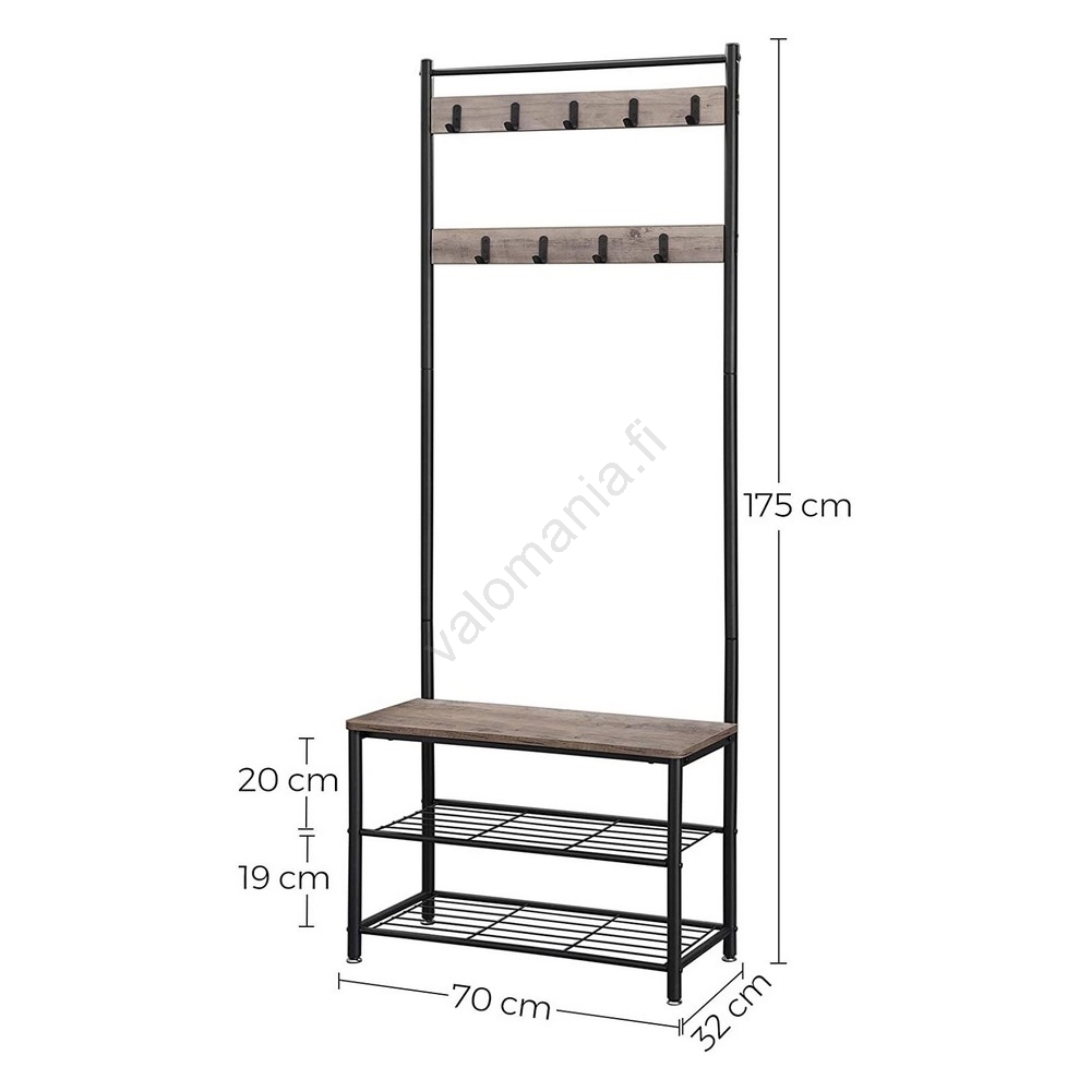 Telineellinen naulakko NAVOR ruskea/musta | Valomania