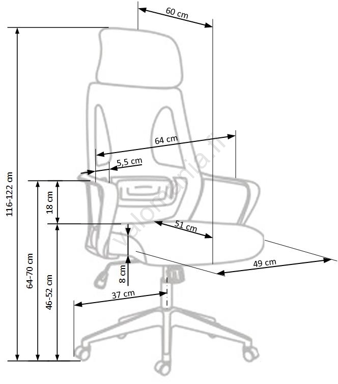 • Istuinkorkeuden ja selkänojan kallistuksen säätömahdollisuudet tekevät tuolista helposti säädettävän juuri sinun vartalollesi ja istuma-asennollesi.
