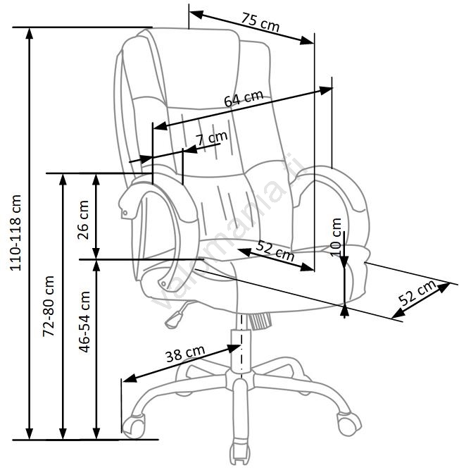 • Istuinkorkeuden ja selkänojan kallistuksen säätö mahdollistaa tuolin helpon mukauttamisen vartaloosi ja istumistyyliisi.