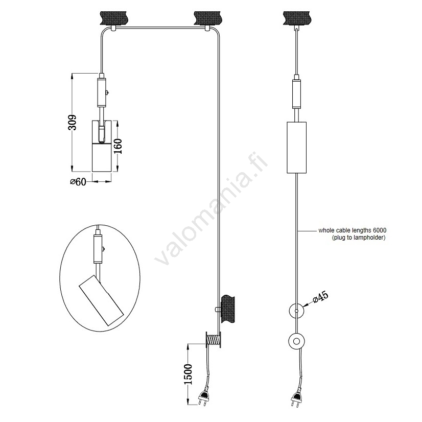 Trio - Kattokruunu johdossa CARLA 1xGU10/35W/230V | Valomania