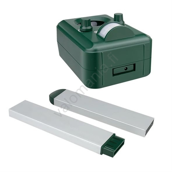 • Se on yhdistelmä erittäin tarkkaa tunnistusjärjestelmää, joka laukaisee voimakkaat ultraääniaallot ja terävän valon stroboskooppiperiaatteella, kun liikettä havaitaan anturin alueella.