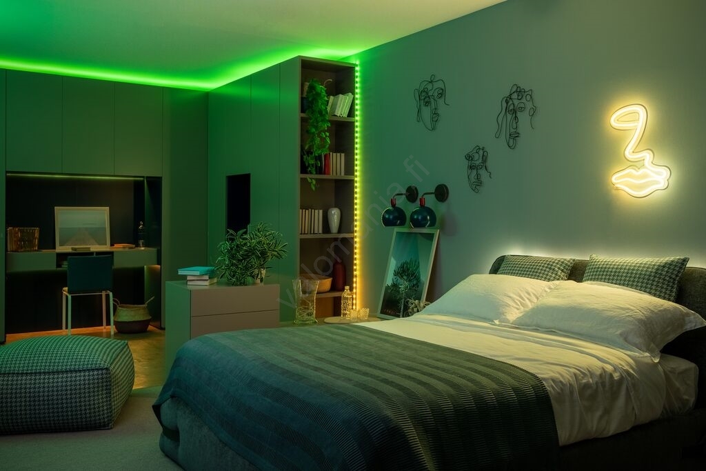 • Tämä älykäs LED-nauha on helppokäyttöinen ja tuo kotiisi edistyksellisimmät teknologiat sisustamiseen.