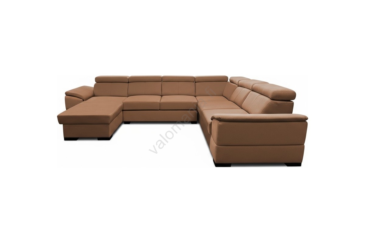 Vuoteeksi avattava käännettävä U-muotoinen kulmasohva säilytystilalla GRANADA ruskea | Valomania