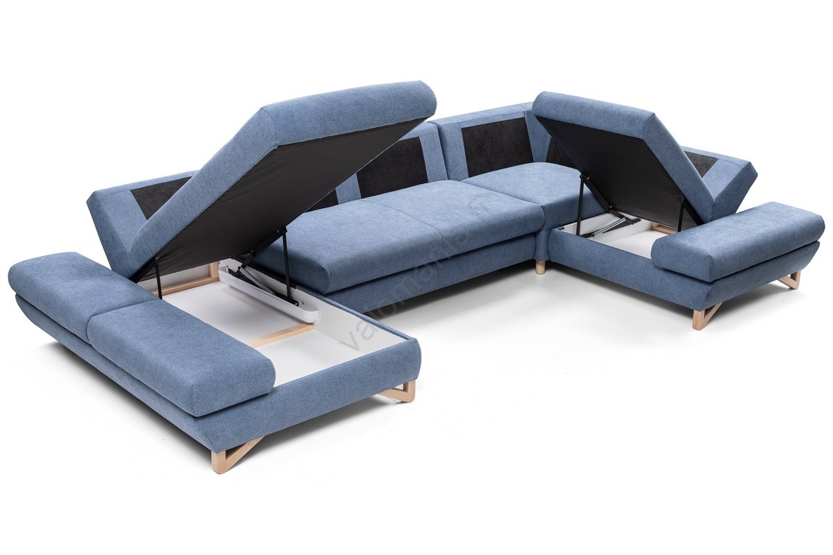 • U-muotoinen avattava verhoiltu kulmasohva AVESTA, säilytystilalla, sininen