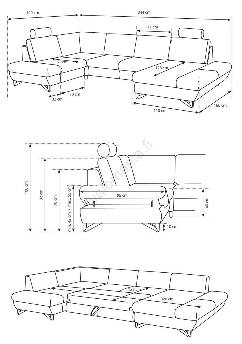 • Kiitos vuodetoiminnon (delfiinimekanismi) sohva muuntuu helposti mukavaksi nukkumatilaksi.