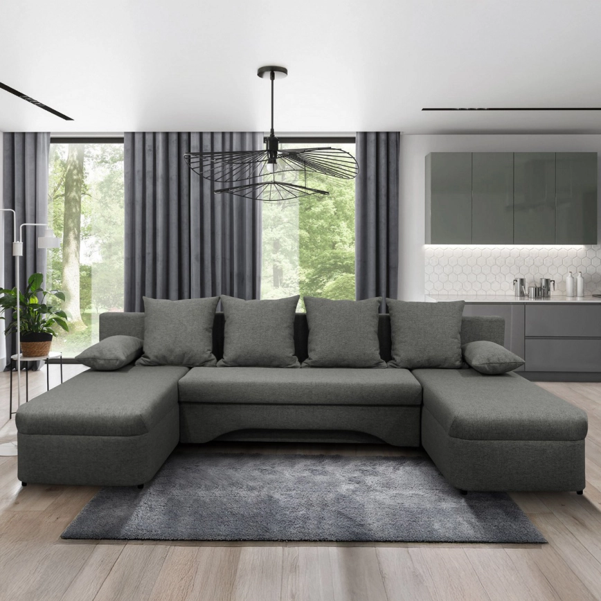 • Monikäyttöinen U-muotoinen avattava kulmasohva säilytystilalla ALMEIDA harmaa