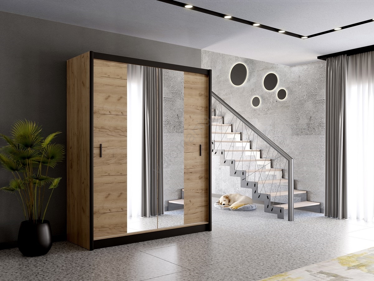 Vaatekaappi peilillä MIRO 203x215 cm tammi craft/musta | Valomania