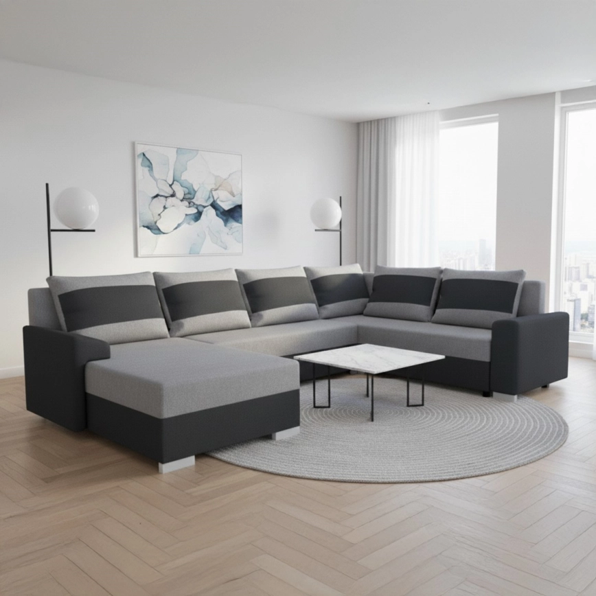 Verhoiltu, monikäyttöinen U-muotoinen levitettävä sohva OXFORD, musta/harmaa | Valomania