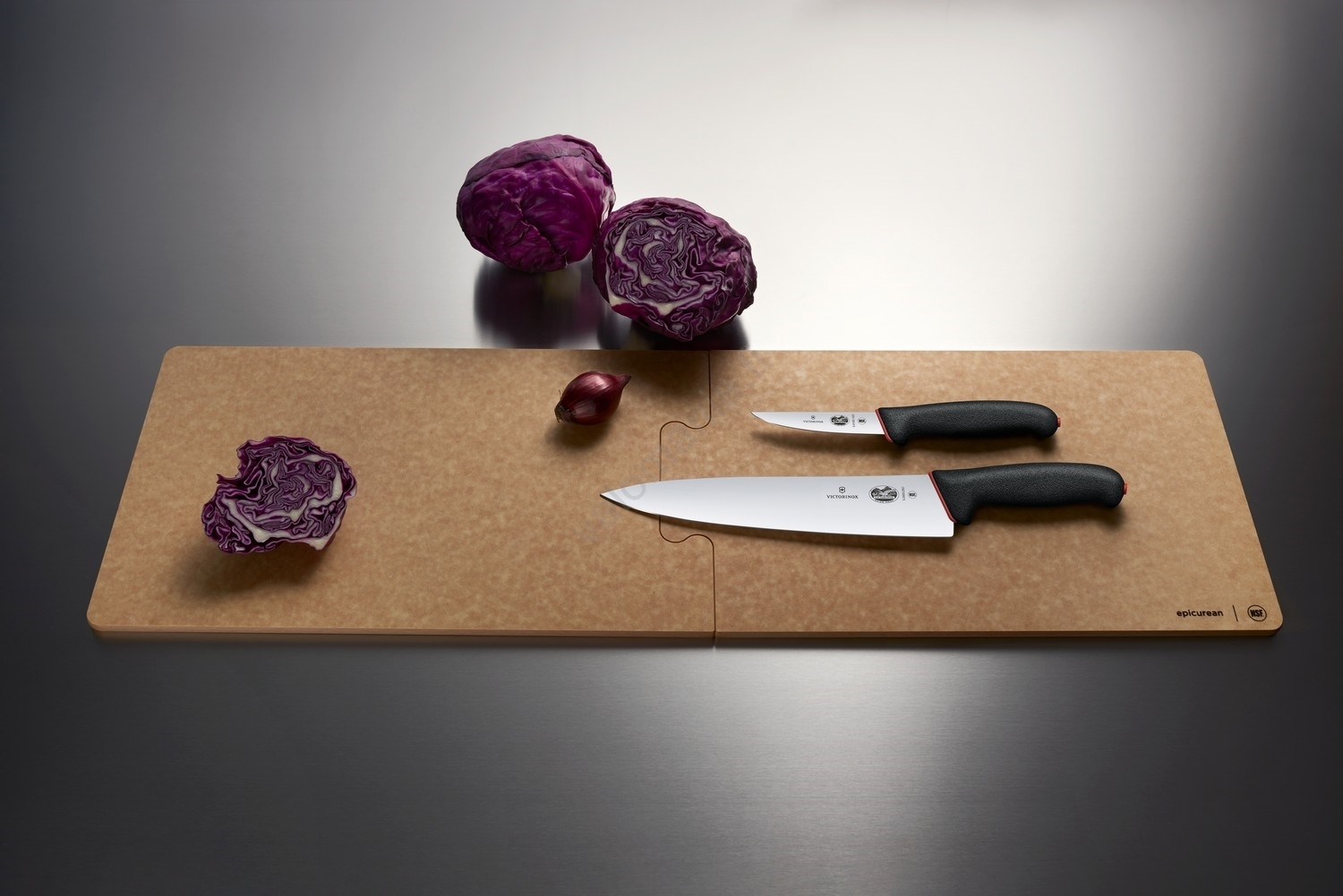 • Victorinoxin keittiöveitsi, jossa 25 cm terä.