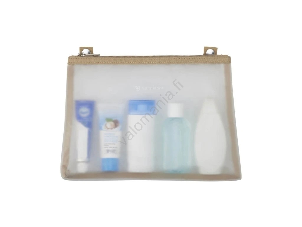 • Helposti puhdistettava läpinäkyvä vetoketjullinen kotelo ja runsaasti taskuja välttämättömille tavaroillesi.