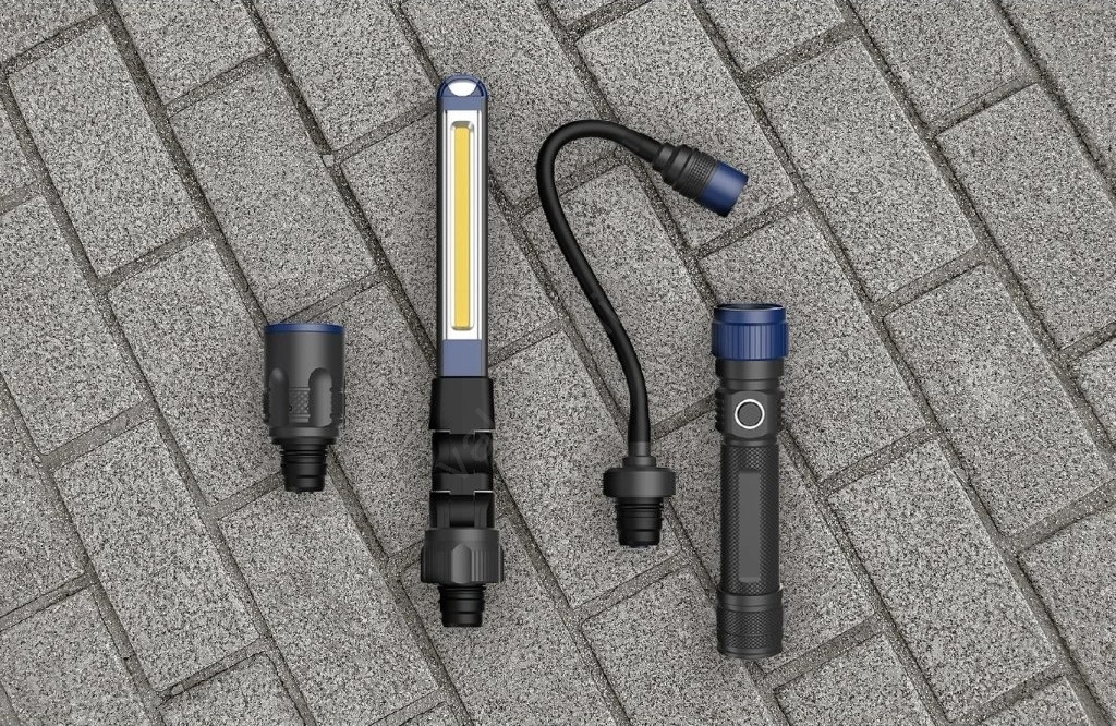 • Tarjoaa valotehon 380 lm ja kolme vaihdettavaa päätä (tavallinen, taipuva, LED-nauha).
