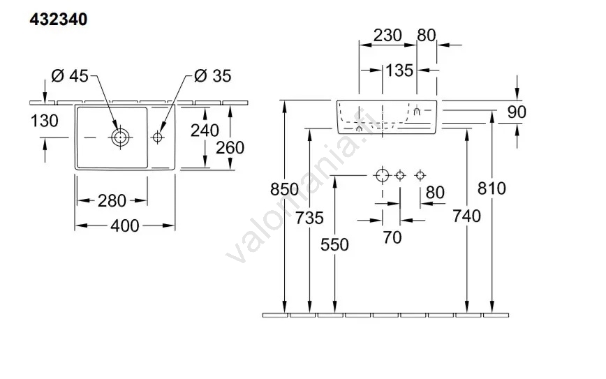 Villeroy & Boch 43234001 - Seinään kiinnitettävä pesuallas MEMENTO 40x26 cm keraaminen/valkoinen | V