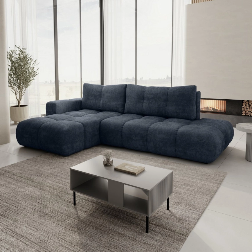 ALMADA L-mallinen avattava verhoiltu kulmasohva säilytystilalla, vasen, sininen