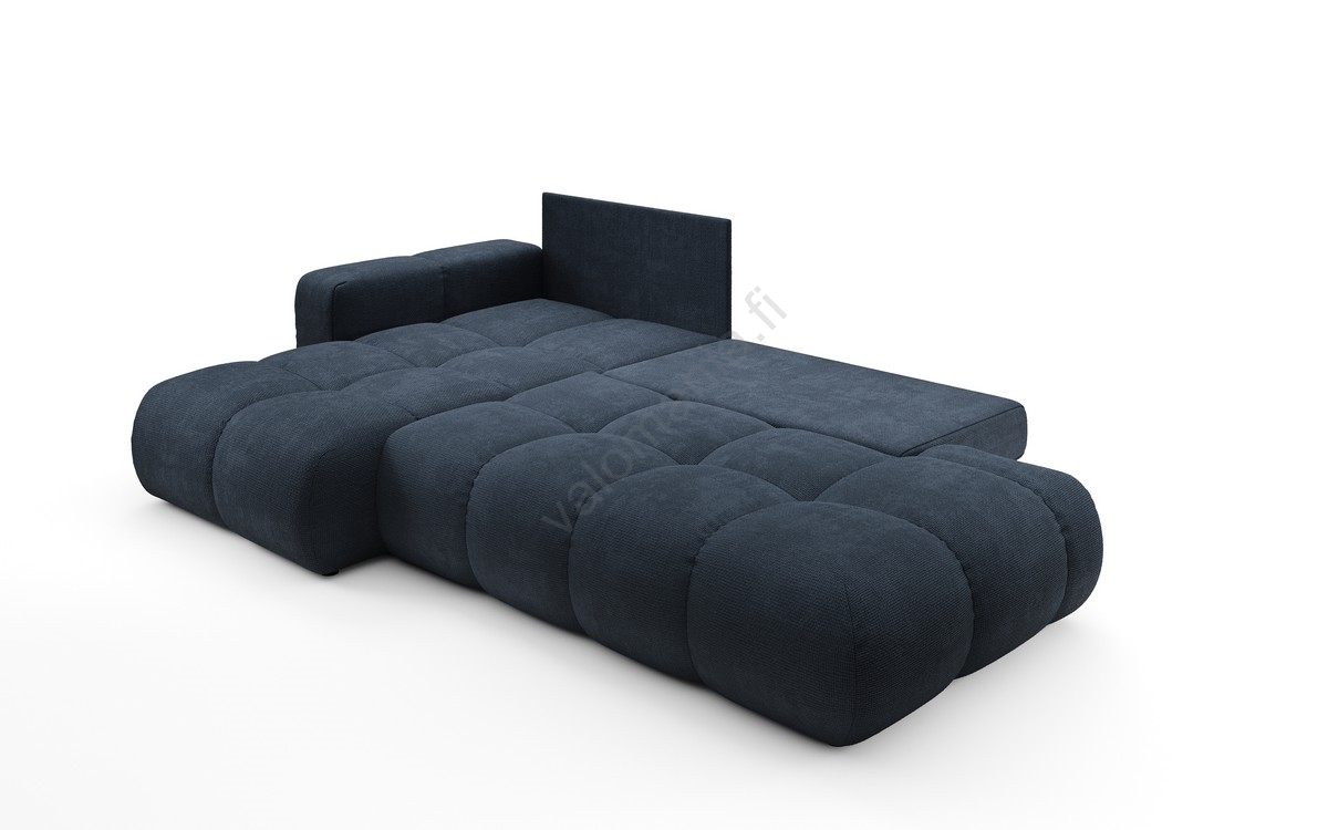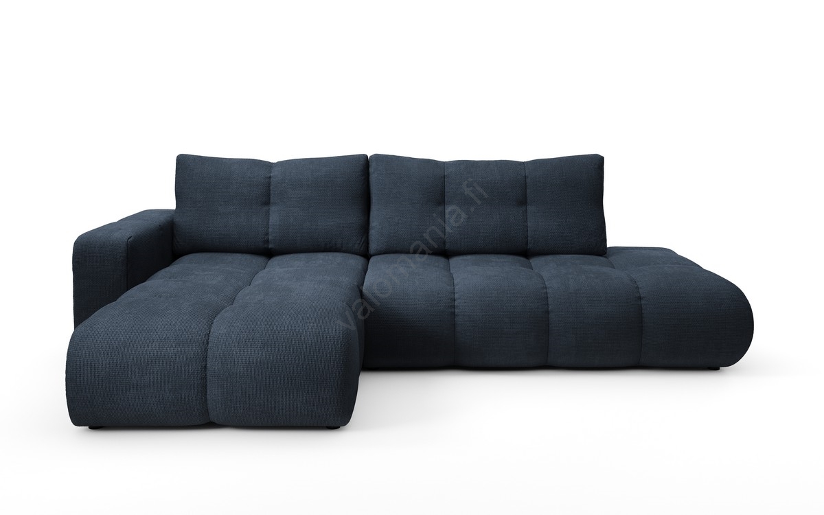 • ALMADA L-mallinen avattava verhoiltu kulmasohva säilytystilalla, vasen, sininen