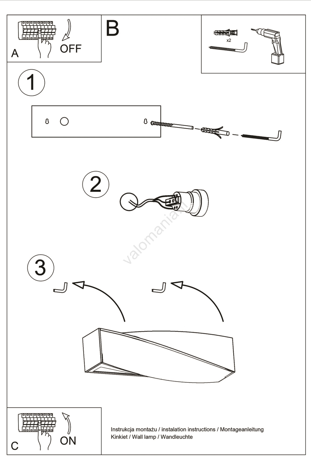 Seinävalaisin SIGMA 2xE27/60W/230V merkitsee kaunista ja toimivaa muotoilua.  Valoon sopii polttimo, jossa on E27-kanta. Täältä voit ostaa myös muita lamppuja edulliseen hintaan. Mielenkiintoinen lisä kotiisi.