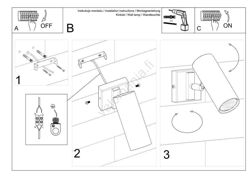 Seinävalaisin DIREZIONE 1xGU10/40W/230V valkoinen | Valomania