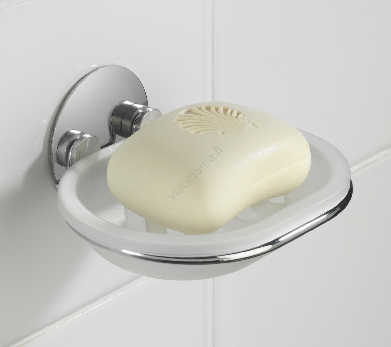 WENKO 18776100 - Saippuateline TURBO-LOC, pyöreä teräs, 13 x 11 cm, kiiltävä kromi/valkoinen | Valom